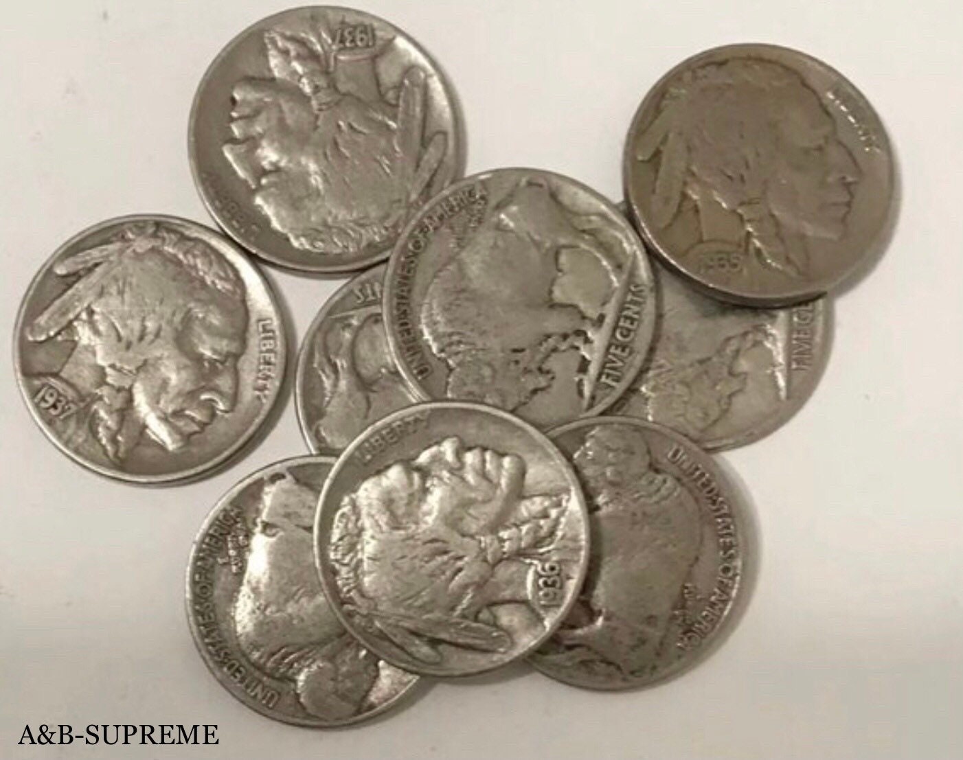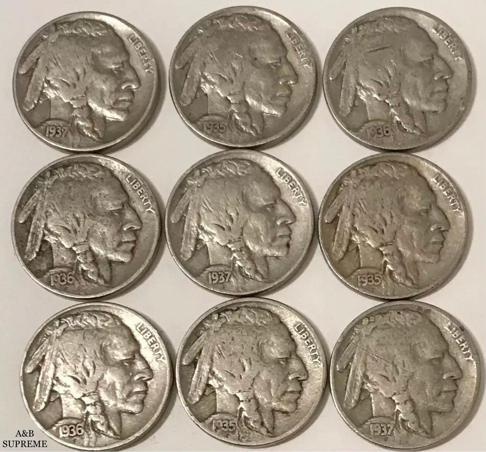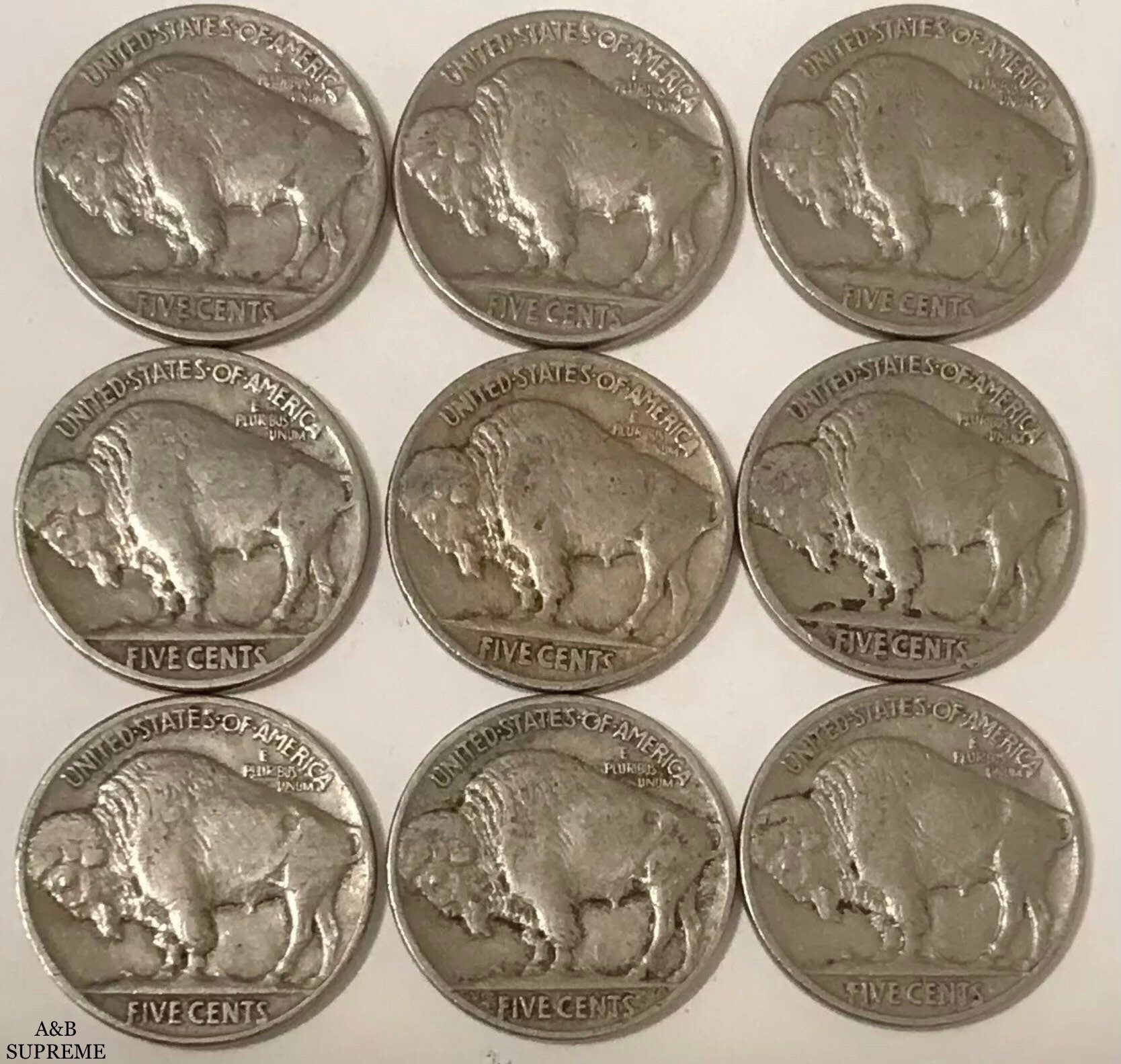 Buffalo Nickels With Dates 9 Per Lot Grab Bag. Shipped with USPS First Class. Buyer will receive 9 Buffalo Nickels With Dates.